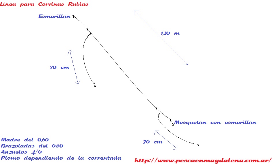y brazoladas de 70cm. aproximadamente. Anzuelos Nº 4/0.